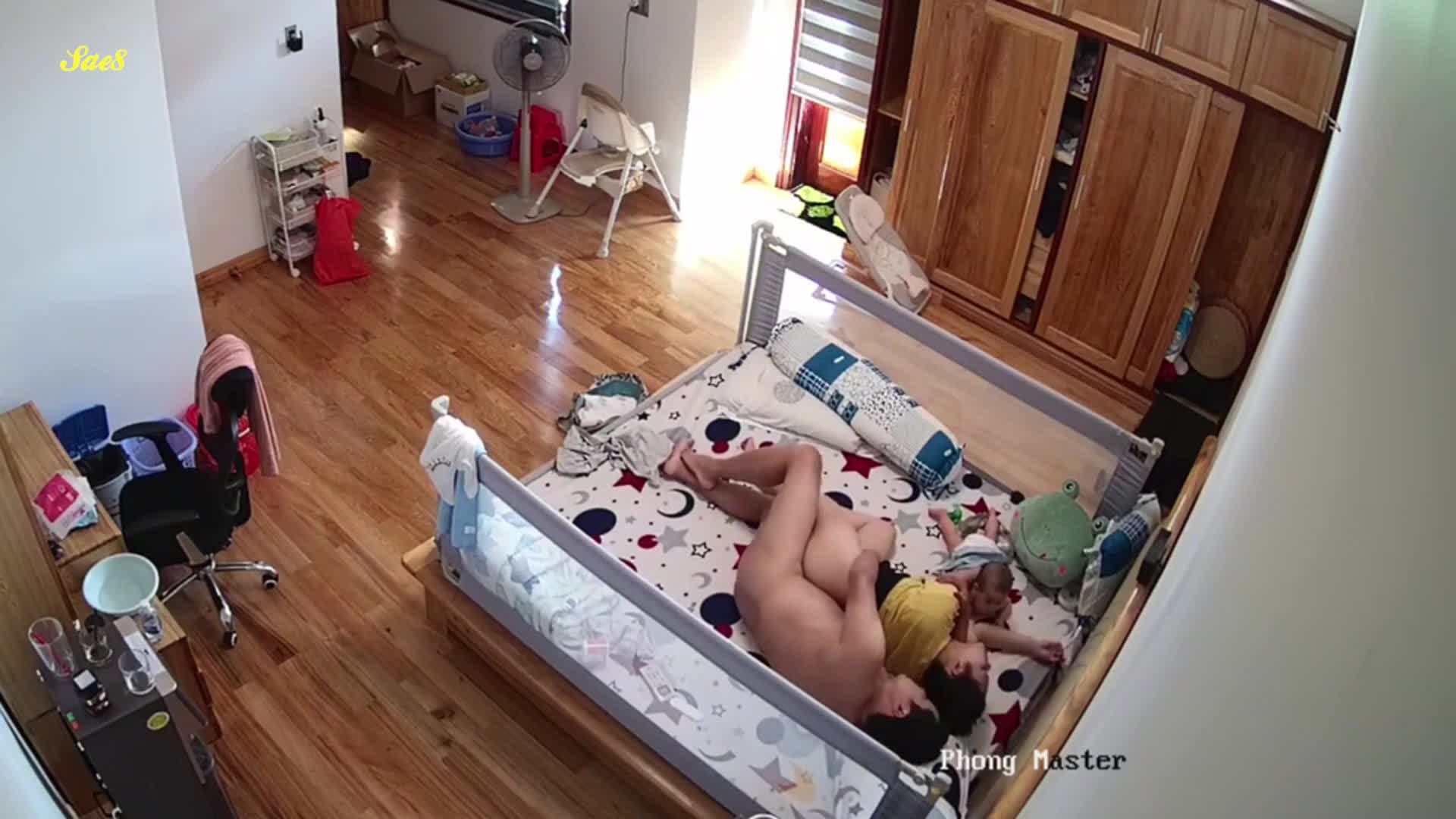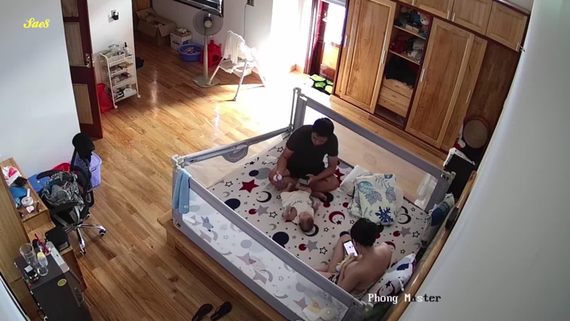 黑客破解摄像头偷拍老公下班回来看见老婆正在喂奶也想上去吃一口。