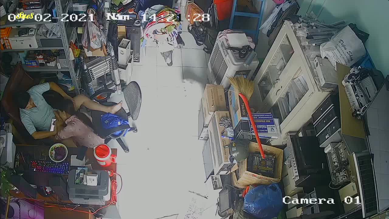 家庭摄像头泄密二手电脑配件老板大白天不做生意关门打炮。